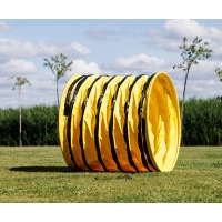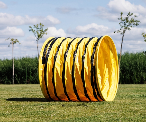 Dieser kurze Agility-Tunnel mit einer Länge von 1 Meter ist ideal für große Hunde. Der Tunnel besteht aus robustem PVC-Planenmaterial und ist dadurch langlebig, wetterfest und für den intensiven Einsatz geeignet. Perfekt für Agility-Training, Hundesport oder einfach zum Spielen im Garten.