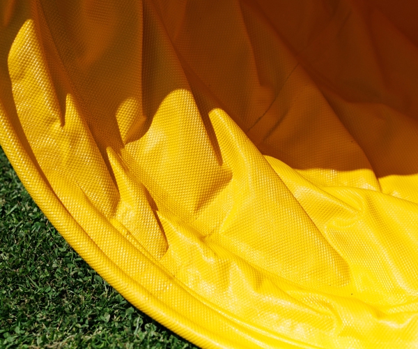 Hergestellt aus robustem PVC (Planenmaterial), wetterfest und besonders schwer – deutlich stabiler als Standardtunnel. In verschiedenen Farben lieferbar, Spiralen immer schwarz.