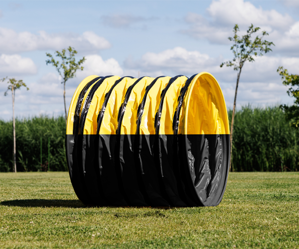 Der Agility-Tunnel Hundetunnel 1 Meter Ø 80 cm ist ideal für große Hunde, die Abwechslung und Bewegung im Training suchen. Mit seiner kurzen Länge und dem extra großen Durchmesser eignet er sich perfekt für Agility-Training, Hundesport und Übungen zu Hause oder im Verein.