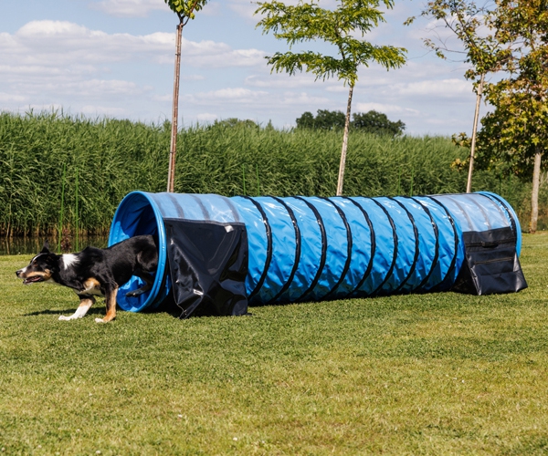 Der Agility-Tunnel hat einen Durchmesser von 60 cm und eine Länge von 3 Metern. Der Hundetunnel ist aus robustem PVC (Planenmaterial) gefertigt.