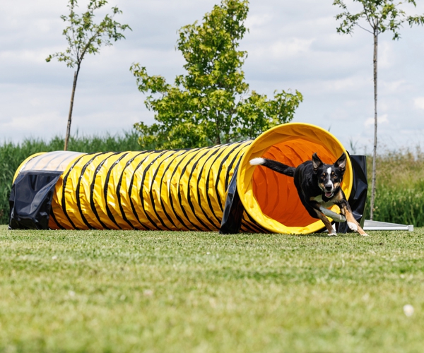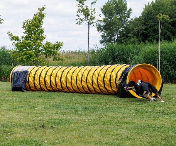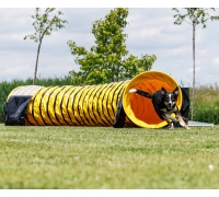 Der Agility-Tunnel hat einen Durchmesser von 60 cm und eine Länge von 5 Metern. Der Hundetunnel ist aus robustem PVC (Planenmaterial) gefertigt und bietet durch das komplett Anti-Rutsch-Material maximale Sicherheit beim Durchlaufen.
