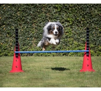 Achte auf genügend Platz für Absprung und Landung und bring deinem Hund bei, mittig über die Stange zu springen.