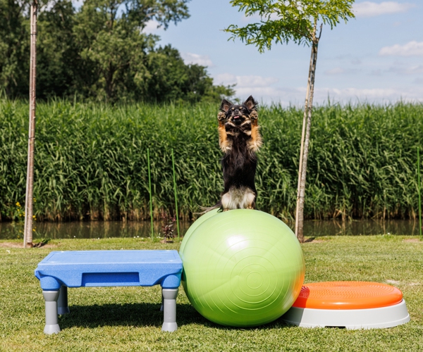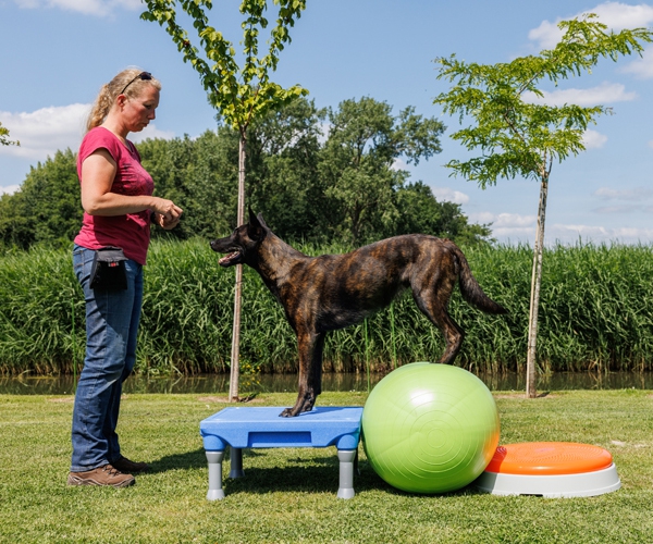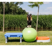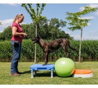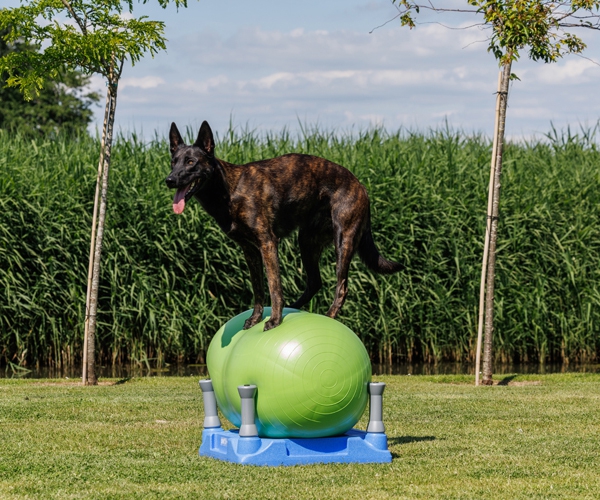 Geeignet für Hunde jeden Alters, um an Balance, Propriozeption und Kraft zu arbeiten. Das Untergestell sorgt für mehr Stabilität und kann das Kissen für den Hund stabiler machen, um darauf zu trainieren. Durch stärkeres oder weniger starkes Aufpumpen des Kissens lässt sich das Training leichter oder schwerer gestalten.