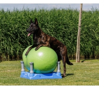 Die einzigartige Form dieser „Peanut“-Ball bietet viele Möglichkeiten für anspruchsvollere Balancearbeit. Die Peanut kann sowohl in der Länge als auch in der Breite genutzt werden. Anstatt vollständig auf der Peanut Platz zu nehmen, kann der Hund – unterstützt durch The KLIMB – auch nur mit den Vorder- oder Hinterpfoten auf der Peanut stehen. Diese Peanut Ball Plus verfügt über ein Burst Resistant Quality System (Anti-Burst-System). Das BRQ-System sorgt dafür, dass der Ball bei einer äußeren Beschädigung langsam Luft verliert (und nicht platzt). Der Hund erschrickt also nicht, wenn der Ball beschädigt wird.