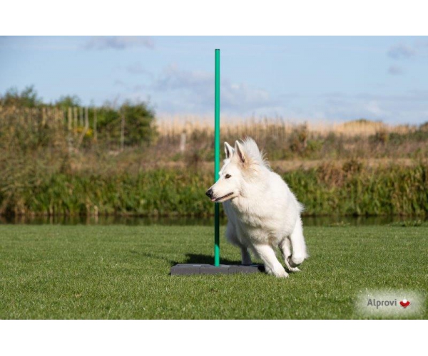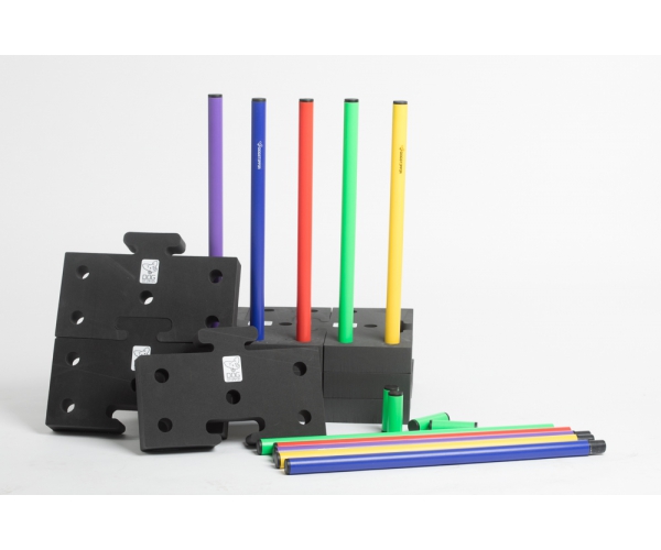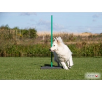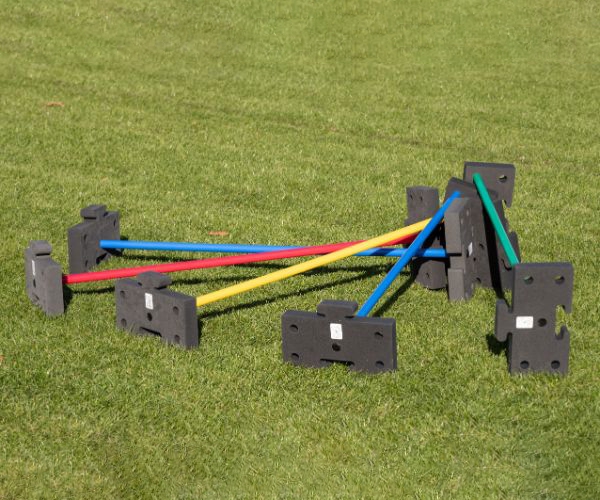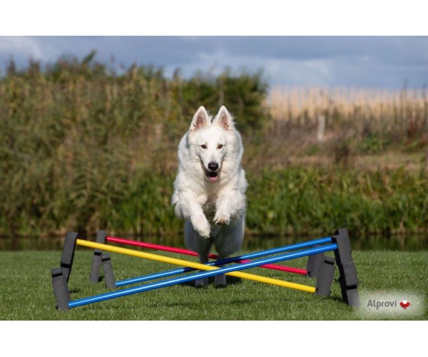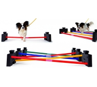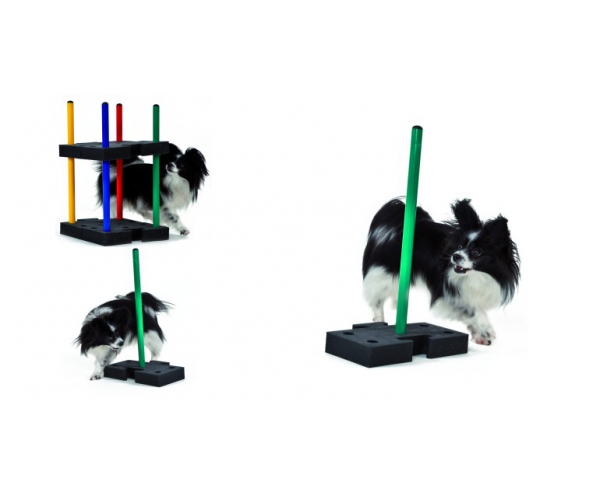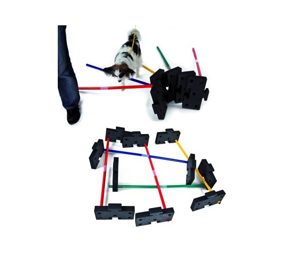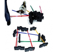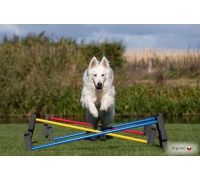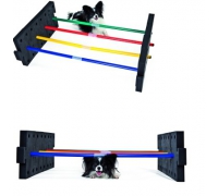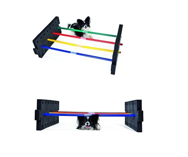 Mit den Seitenteilen und einer Stange lässt sich schnell ein Sprunghindernis aufbauen. Die Seitenteile können gestapelt werden, um eine höhere Sprunghöhe zu erreichen. Zwei Hindernisse können auch als Begrenzung dienen, um dem Hund das gerade Vor- oder Rückwärtslaufen beizubringen.