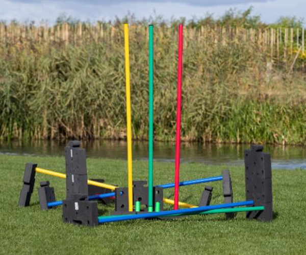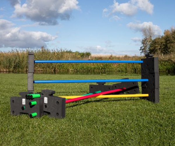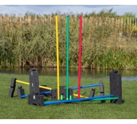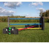 Mit den Seitenteilen und einer Stange lässt sich schnell ein Sprunghindernis aufbauen. Die Seitenteile können gestapelt werden, um eine höhere Sprunghöhe zu erreichen. Zwei Hindernisse können auch als Begrenzung dienen, um dem Hund das gerade Vor- oder Rückwärtslaufen beizubringen.