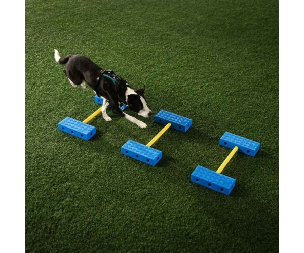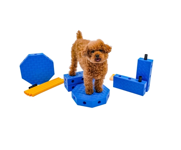 Mit diesen Komponenten lassen sich verschiedene Aufstellungen ganz einfach erstellen. Dadurch ist das Training vollständig an die Bedürfnisse des Hundes anpassbar. Es kann mit niedrigen und stabilen Übungen für Anfänger begonnen werden, danach lässt sich das Niveau schrittweise zu anspruchsvolleren Parcours für fortgeschrittenes Training oder Rehabilitation steigern.