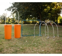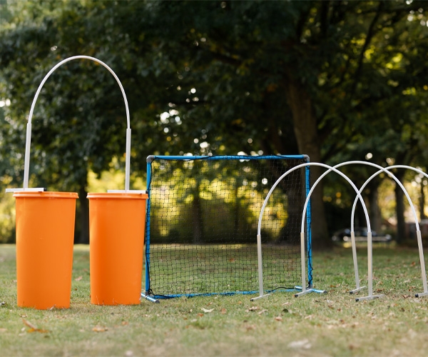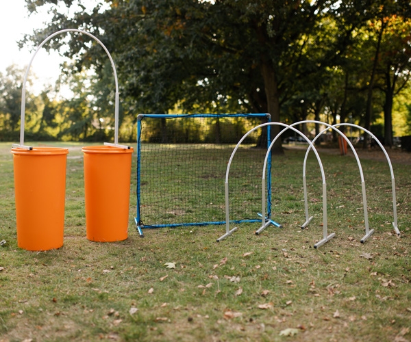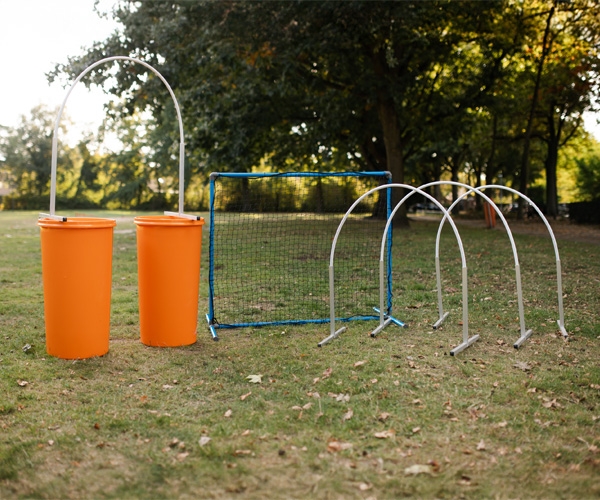 Das Kunststofftor kann sowohl als Begrenzung als auch als Trainingshilfe eingesetzt werden – etwa, um das Durchlaufen eines Hoops zu üben oder enge Kurven zu vereinfachen.