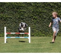 Diese Hürde wurde mit Sorgfalt aus hochwertigem Holz gefertigt und bietet eine maximale Höhe von 65 cm für die obere Stange. Mit einer Breite von 90 cm und sechseckig geformten Stangen mit einem Durchmesser von 4 cm vereint sie Stabilität, Funktionalität und ein attraktives Design.