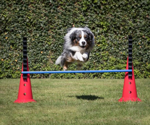Die Halterungen sind mehrfach höhenverstellbar, sodass du die Sprunghöhe individuell anpassen kannst – ideal für Hunde jeder Größe.