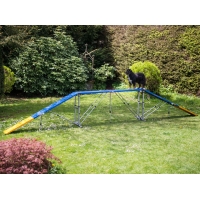 Das richtige Überqueren dieses Hindernisses erfordert Gleichgewicht, Körperkontrolle und Konzentration und stärkt die Zusammenarbeit zwischen Hund und Hundeführer.