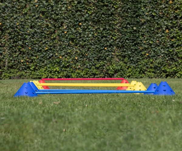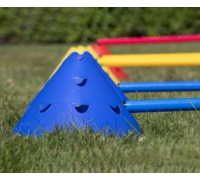 Die Hütchen sind vielseitig einsetzbar – ideal zur Markierung eines Parcours, für Slalom-, Cavaletti- und Sprungübungen.