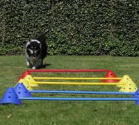 Die Markierungshütchen verfügen über Einkerbungen in verschiedenen Höhen, in die eine Stange gelegt werden kann. So kann flexibel auf 5, 10 und 15 cm trainiert werden. Ideal zur Markierung eines Parcours sowie für Slalom-, Cavaletti- und Sprungübungen.