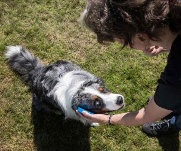 Lass deinen Hund unterwegs die Targetscheibe mit der Nase berühren.