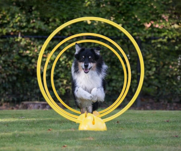 Mit dem multifunktionalen Fuß-Set inklusive Reifen und Stangen lassen sich zahlreiche kreative Übungen für das Hoopers- und Hundetraining gestalten.