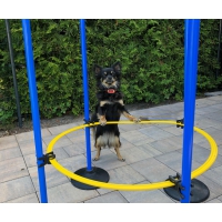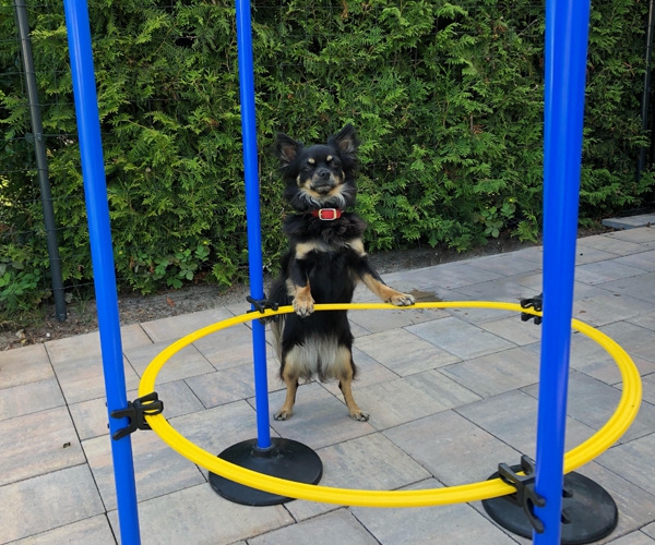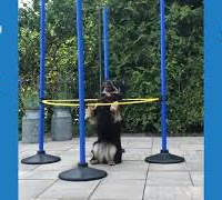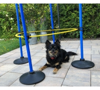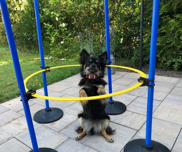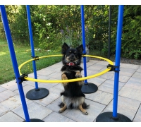 Dein Hund kann sich so an die Stangen gewöhnen und daran, dass er unter etwas hindurchlaufen soll.