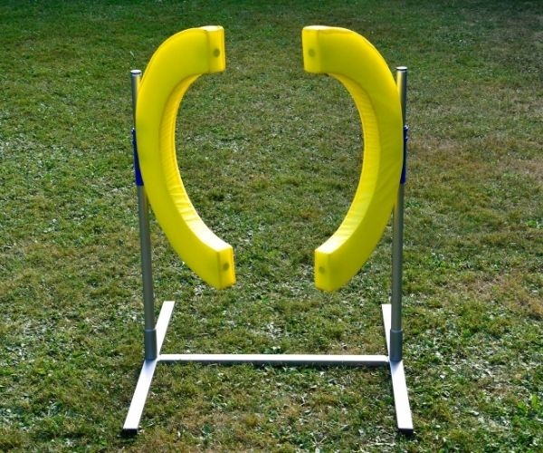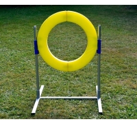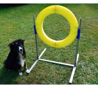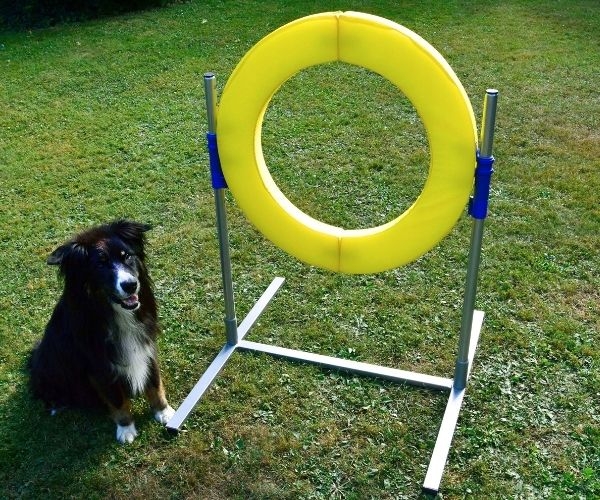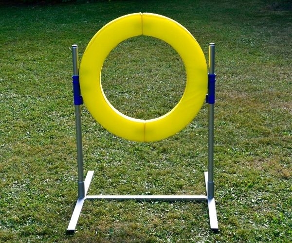 Diese bruchsichere Reifenhürde wurde speziell für maximale Sicherheit entwickelt: Sollte der Hund den Reifen einmal nicht korrekt durchspringen, teilt sich der Ring automatisch in zwei Hälften.