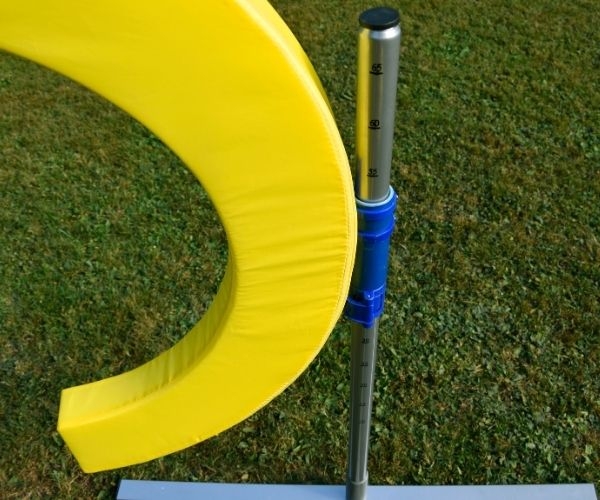 Die Höhe ist einfach verstellbar, sodass der Sprung individuell an die Größe und das Trainingsniveau des Hundes angepasst werden kann.