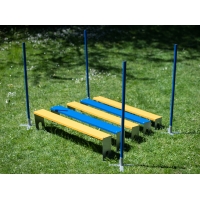 Beginne mit einem Sprungelement, damit dein Hund sich an das Hindernis gewöhnen kann.