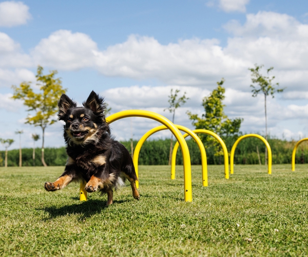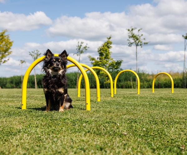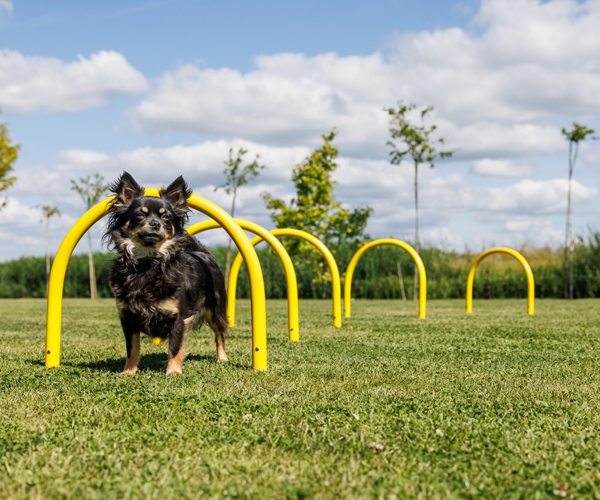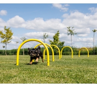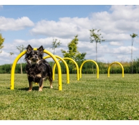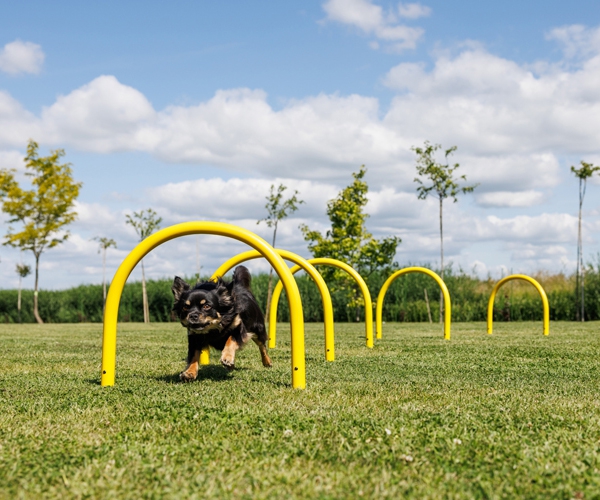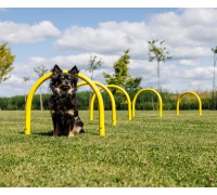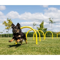 Für mittelgroße Hunde eignen sich die Bögen hervorragend, um Kriechübungen oder das bewusste Körpertraining zu üben.