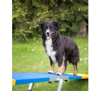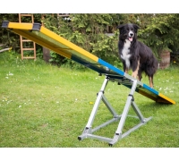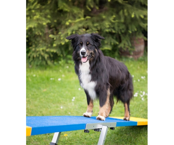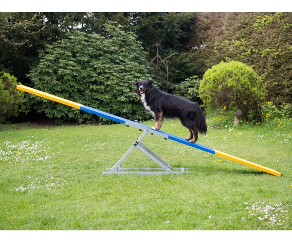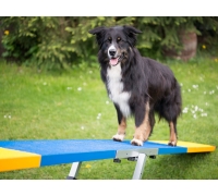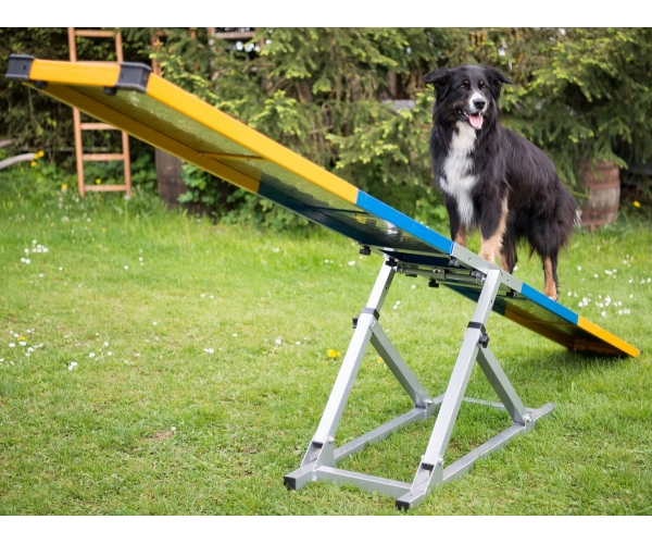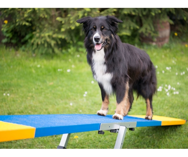 Da sich die Wippe beim richtigen Gewicht automatisch neigt, lernt der Hund, die Bewegung zu kontrollieren und sich sicher über eine instabile Fläche zu bewegen.