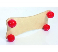 Er besteht aus massivem Holz und ist mit luftgefüllten Bällen an der Unterseite sowie rutschfestem Material auf der Oberseite ausgestattet. Jede Kugel lässt sich mit der mitgelieferten Nadelpumpe individuell in der Härte anpassen.