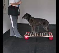 Rückwärtssteigen: Hunde mit gutem Hinterhandbewusstsein können rückwärts auf den Step treten.
