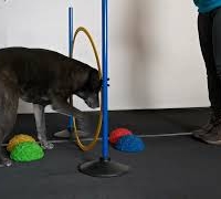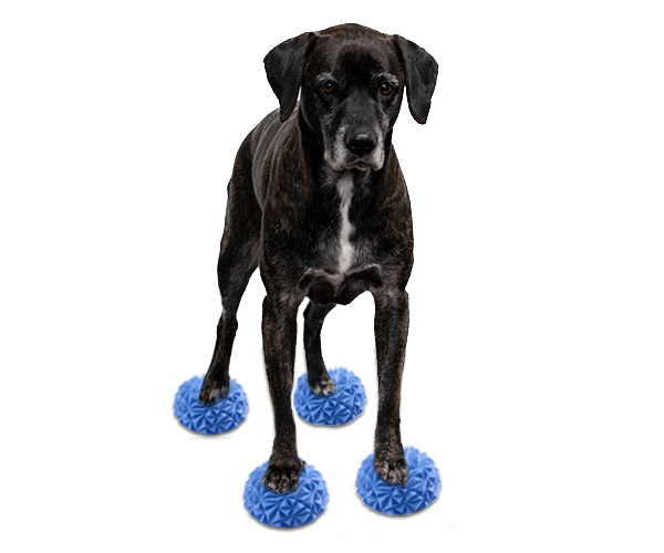 Beim Einstieg kann der Hund zunächst mit zwei Pfoten auf zwei Paw Stones stehen, später auch mit allen vier Pfoten auf vier Steinen.