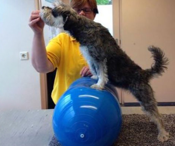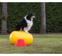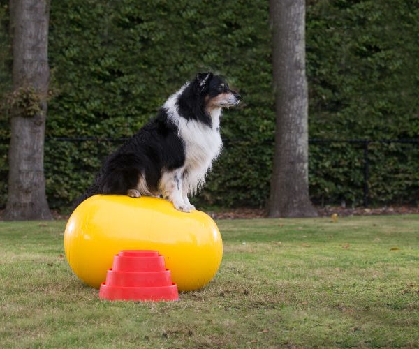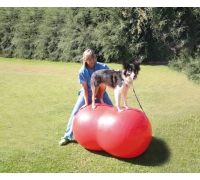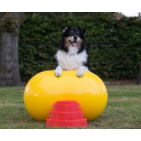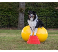 Wenn die Peanut Ball für Hinterhandtraining, Gewichtsverlagerung oder Reha-Übungen verwendet wird (der Hund steht teils auf der Ball, teils auf dem Boden),