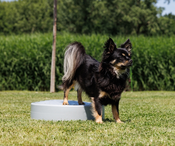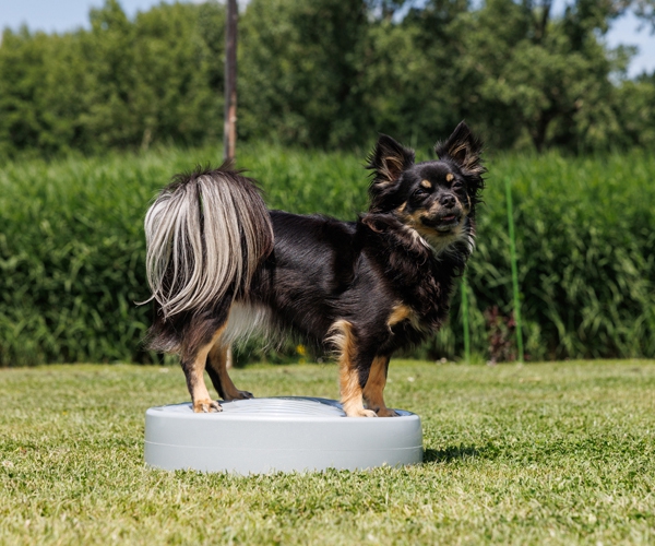 Hinweis: Verwende das Balancekissen ausschließlich als Trainingsgerät und begleite deinen Hund während der Übung. Lass deinen Hund niemals unbeaufsichtigt auf dem Kissen, um Verletzungen und Beschädigungen am Material zu vermeiden.