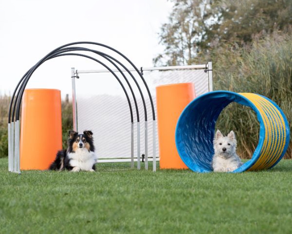 Für die Übungen aus diesem Artikel eignen sich zum Beispiel Balancekissen, Dogsteppers, ein Hoopers Starterset, Targetscheiben oder ein kompletter Parcours.