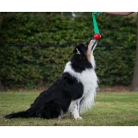 Der Ball hat einen Durchmesser von 7 cm, das Band ist 46 cm lang. Dank seines geringen Gewichts und des weichen Materials ist das Spielzeug sicher, flexibel und auch für kleine Hunde bestens geeignet.