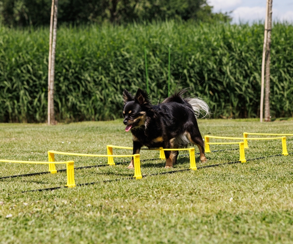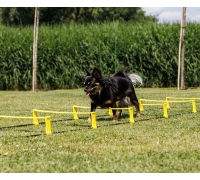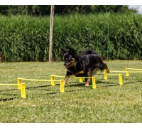 Diese Koordinationsleiter für Hunde vereint Hürde und Laufleiter in einem vielseitigen Trainingsgerät.