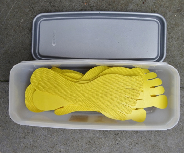 Nach dem Training kannst du die Kunststofffüße einfach mit Wasser und etwas mildem Reinigungsmittel abspülen. Um Knicke zu vermeiden, bewahre sie am besten in einer länglichen Kunststoffbox auf – so bleiben sie glatt und einsatzbereit!
