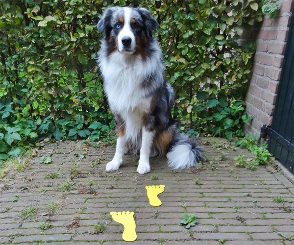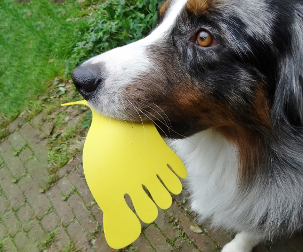 - Für fortgeschrittene Spür- oder Apportierhunde: Verstecke die Fußabdrücke auf dem Trainingsgelände und lasse die Hunde sie suchen und bringen. Achte dabei immer auf Verschluck- und Zerstörungsgefahr.
