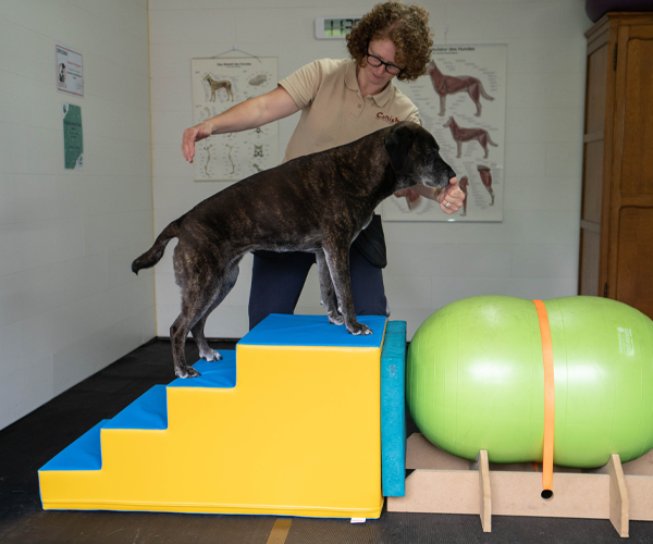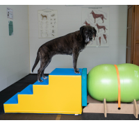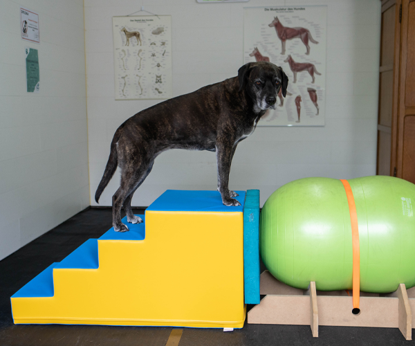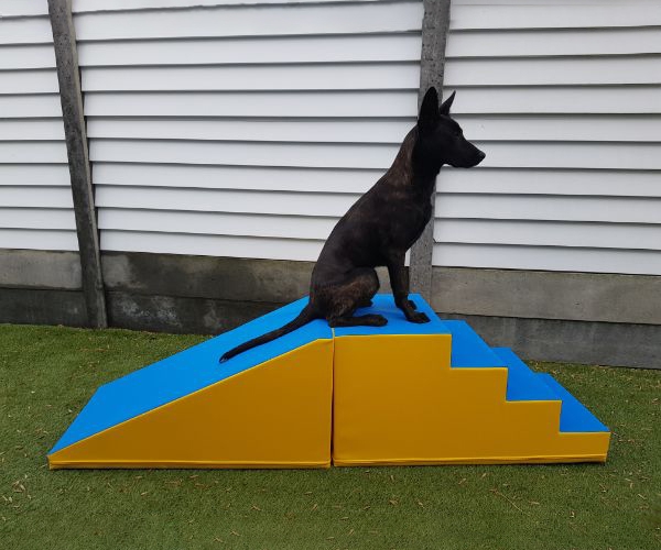 Beim Training auf der Rampe und Treppe muss der Hund klettern, balancieren und bewusst seine Bewegungen kontrollieren – das stärkt das Vertrauen, verbessert die Körperwahrnehmung und fördert die Konzentration.
