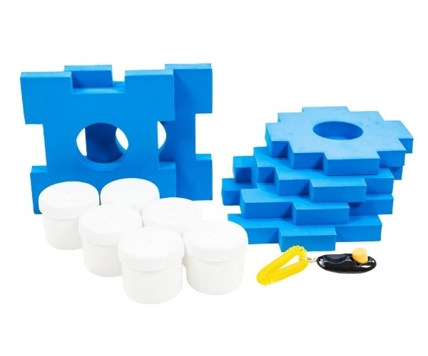 | Inhalt | 6 Puzzleteile aus Schaumstoff, 6 Kunststoffdöschen, 1 Clicker |