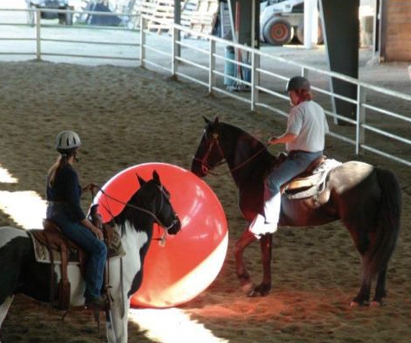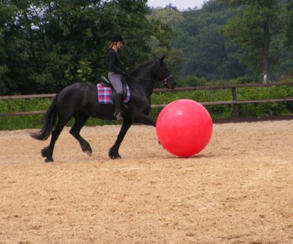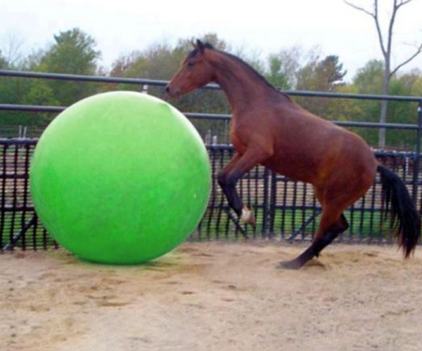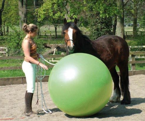 Die richtige Größe ist wichtig – der Ball sollte etwa bis zum Brustbein des Pferdes reichen.