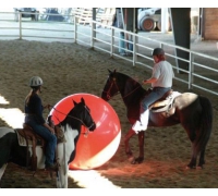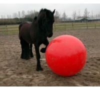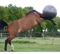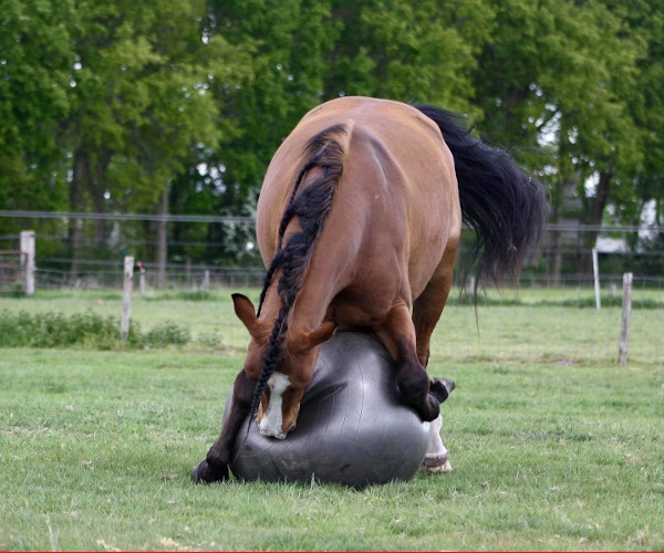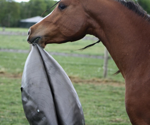 Achte darauf, immer in der Nähe zu bleiben, wenn dein Pferd mit dem Ball spielt. Der Ball muss vollständig auf die maximale Größe aufgepumpt sein, damit das Pferd nicht hineinbeißen kann.