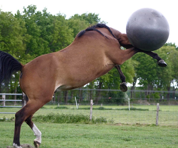 Dann probiere Pferdefußball! Wirf einen großen Ball in die Reitbahn und entdecke, welches Fußballtalent in deinem Pferd steckt. Du kannst gemeinsam spielen oder sogar vom Pferd aus ein kleines Match starten. Diese Pferdebälle sorgen für endlosen Spielspaß für Pferd und Reiter.