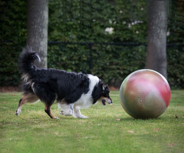 Hunde bis etwa 40 cm Schulterhöhe verwenden Bälle mit 45 cm Durchmesser.