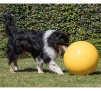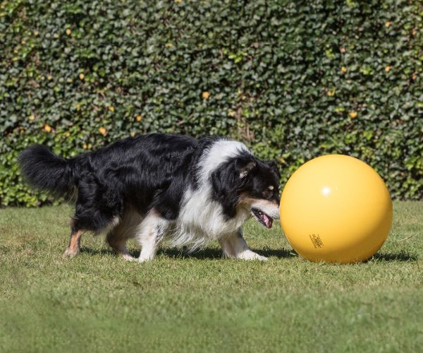 Hunde mit einer Schulterhöhe über 40 cm verwenden beim Treibball einen Ball mit 65 cm Durchmesser.